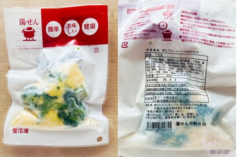 ブロッコリー(国産)、鶏卵加工品(国内製造)、ごま油、食用植物油脂、中華用調味料(食塩、チキンエキス、ポークエキス、砂糖、その他)、味付け塩胡椒(食塩、胡椒、コーンフラワー、砂糖)/調味料(あみのさんなど)、加工デンプン、糊料(キサンタンガム)香料、着色料(カロチン)(一部に卵、乳成分、牛肉、ごま、大豆、鶏肉、豚肉、ゼラチンを含む)